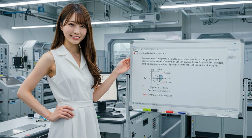- 丸棒磁石(2本)の長さ:それぞれ平均100mm、標準偏差2mmの正規分布