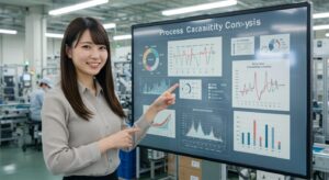 工程能力は、工程の安定性や品質管理、工程能力指数(C_p、Cpk)の算出といった専門的な分析手法で評価される。