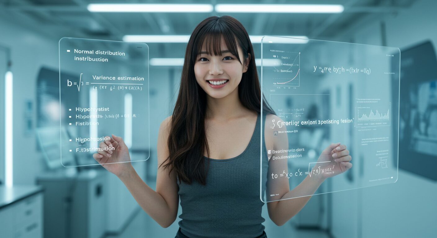 分位点(Z分布、t分布、カイ二乗分布、F分布)、母分散既知・未知、平均の差、対応のある測定、統計的検定などの理論が根本となります。